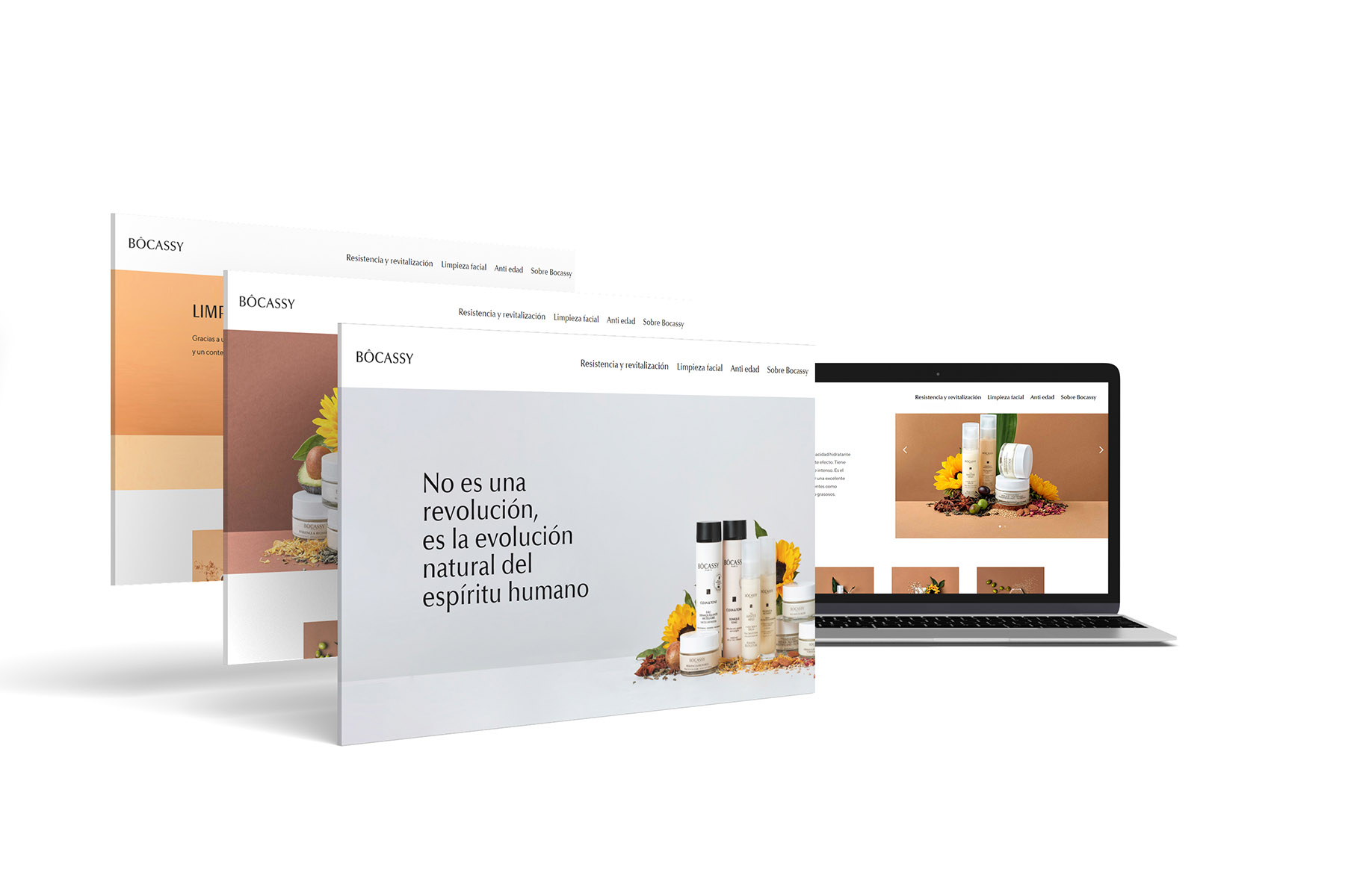 Disseny i desenvolupament de la pàgina web corporativa per a la marca Bocassy, ​​creant les diferents seccions a nivell corporatiu i de producte.